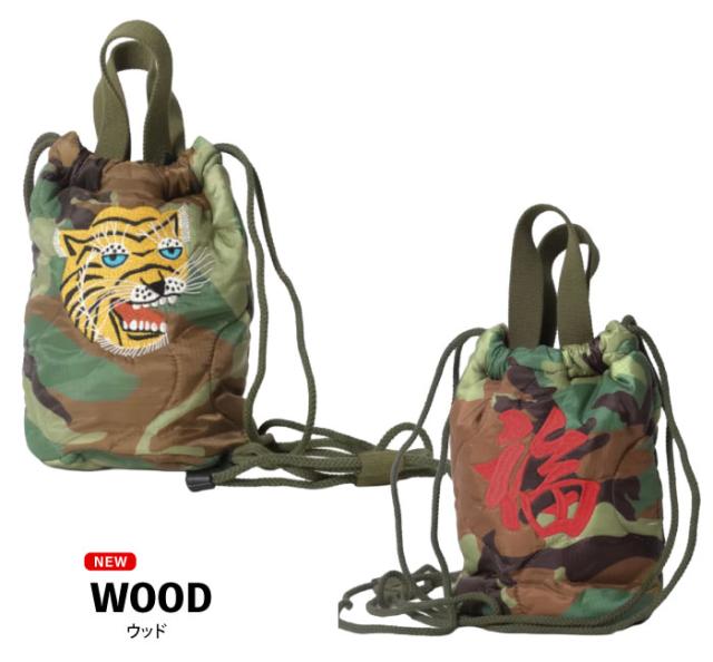 Houston ヒューストン 刺繍キルティングエフェクトバッグ(虎) 手提げ ショルダーバッグ 肩掛け 巾着 2WAY ミリタリー ベトジャン風 虎 福 かばん メンズ レディース 男女兼用 通勤 通学 カジュアル アメカジ 6844 メール便対応