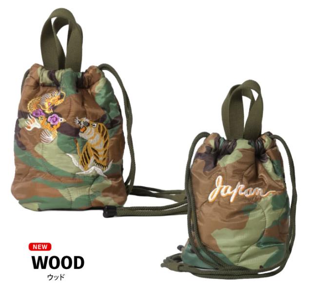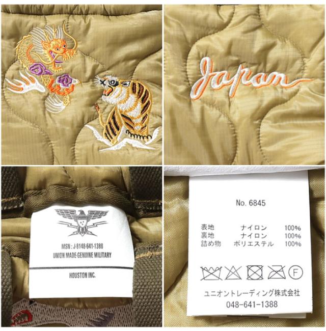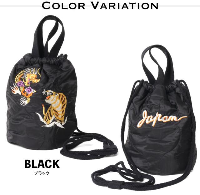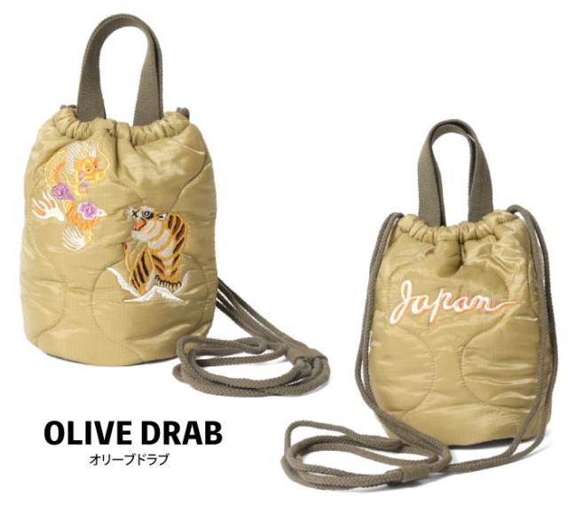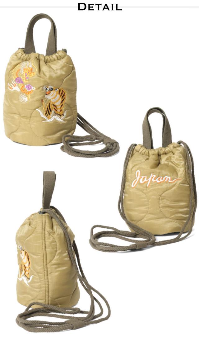 Houston ヒューストン 刺繍キルティングエフェクトバッグ(日本) 手提げ ショルダーバッグ 肩掛け 巾着 2WAY ミリタリー スカジャン風 虎 龍 かばん メンズ レディース 男女兼用 通勤 通学 アメカジ ジャパン 和柄 6845 メール便対応