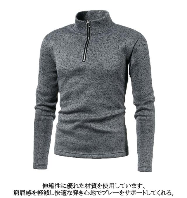 ポロシャツ 長袖 春秋 モックネックシャツ ゴルフウェア メンズ ハーフジップ トレーナー ハイネックTシャツ 無地 トップス スポーツウェア おしゃれ 大きいサイズ ゴルフ 春服 父の日 紳士服 ギフト 作業着 送料無料