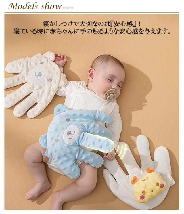 赤ちゃん用 寝かしつけ 加熱クッション 指が動き 電動式 新生児 夜泣き防止 快眠 安眠 ぬいぐるみ クッション 手ひら 可愛い お母さんの手触りを真似 吐き戻し防止 驚いた防止 添い寝 排気促進 おねんね抱っこ やわらか手触り 幼児用 出産祝い ギフト