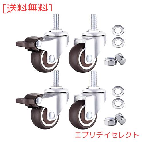 ネジ式 キャスター 4個セット ブレーキ付き M8ネジ 360度回転 耐荷重 80kg 360度回転 ゴム車輪 1.5インチ キャスター 簡単設置 DIY 車輪3