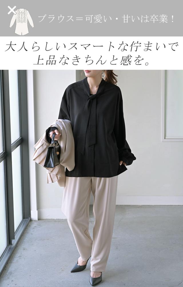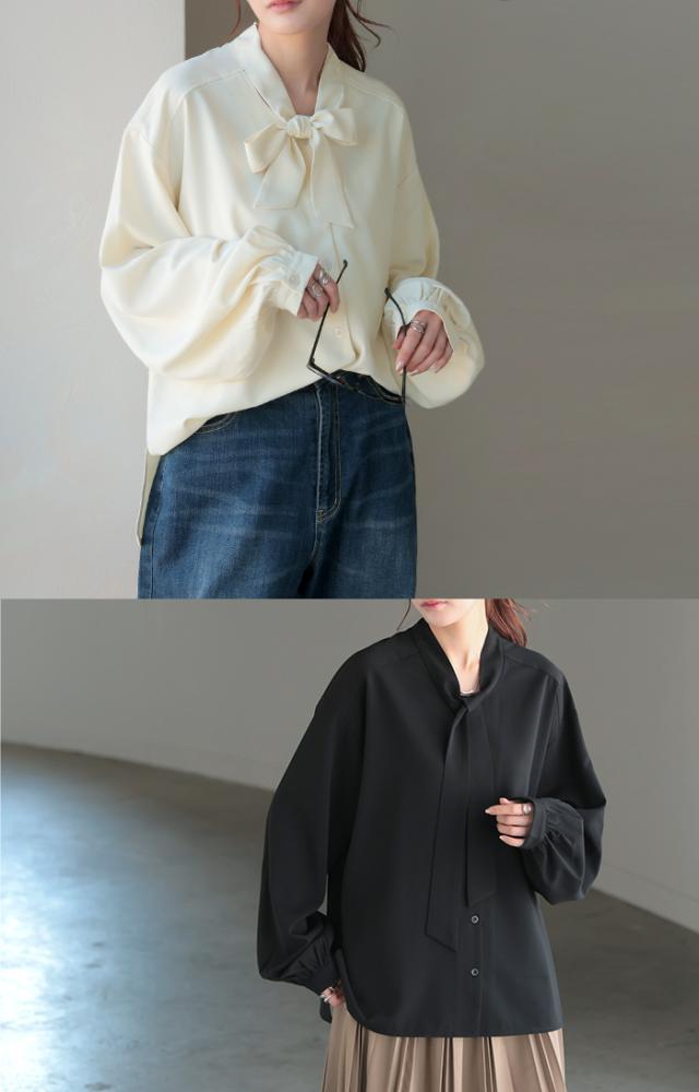 様々な着こなしが楽しめるボウタイシャツブラウスです。