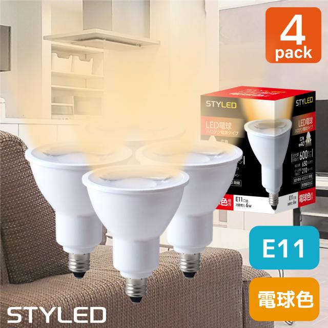 【4個セット・1個当たり549円】E11口金 LED電球 ハロゲン電球 タイプ 消費電力6W 広角タイプ 電球色(全光束600lm・ビーム光束210lm) STYLED(スタイルド)