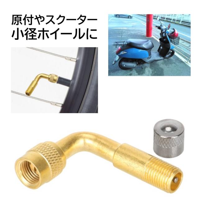 1個 エアバルブ L型 エアーバルブ バイク 90° エクステンション 原付空気入れ可 バイク用 エアバルブキャップ 交換用 原付バイク用