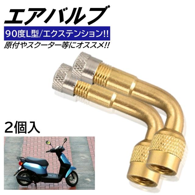 2個 エアバルブ L型 エアーバルブ バイク 90° エクステンション 原付空気入れ可 バイク用 エアバルブキャップ 交換用 原付バイク用