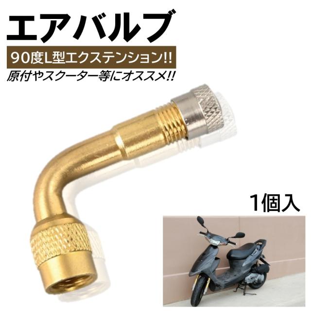 1個 エアバルブ L型 エアーバルブ バイク 90° エクステンション 90度 原付空気入れ可 バイク用 エアバルブキャップ 交換用 原付バイク用