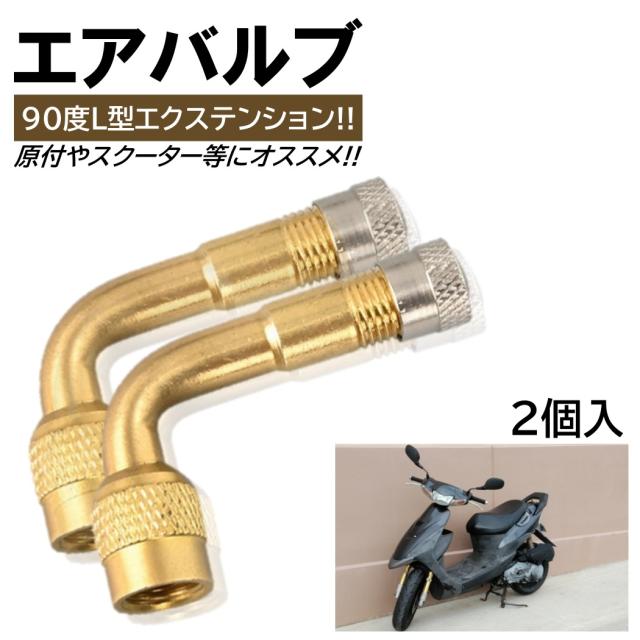 2個 エアバルブ L型 エアーバルブ バイク 90° エクステンション 90度 原付空気入れ可 バイク用 エアバルブキャップ 交換用 原付バイク用