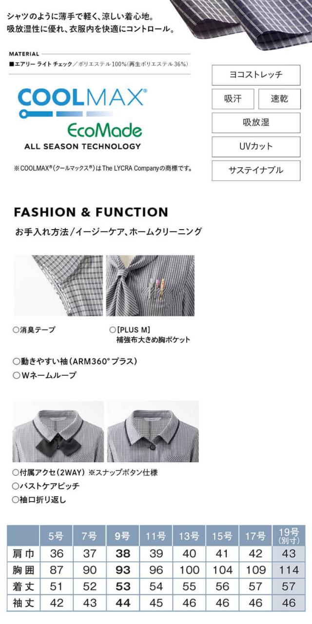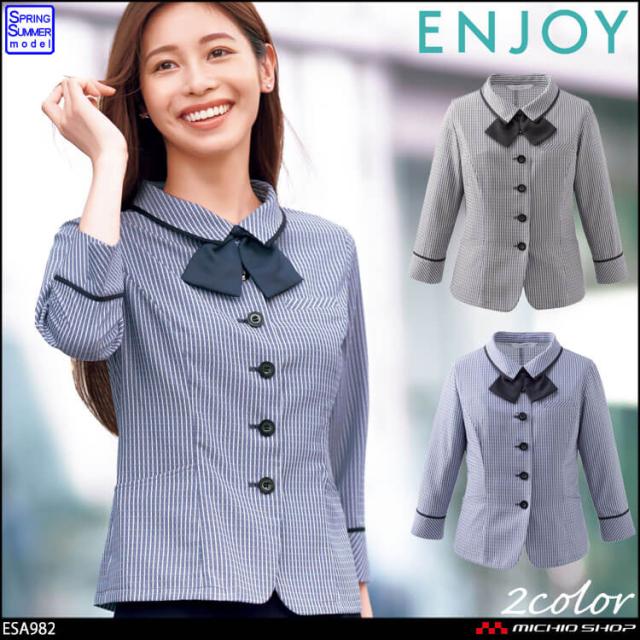事務服 制服 ENJOY エンジョイ オフィス カーシーカシマ 2WAY オーバーブラウス(七分袖)ESA982 サイズ19号 エアクールライトブラウス