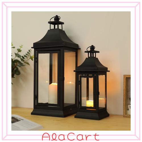 【素敵なインテリア】洗練されたこのキャンドルランタンは庭の形を採用し、ヴィンテージの雰囲気を見せる。メタル素材と耐熱ガラスはランタンの耐久性を向上させて、錆びにくいです