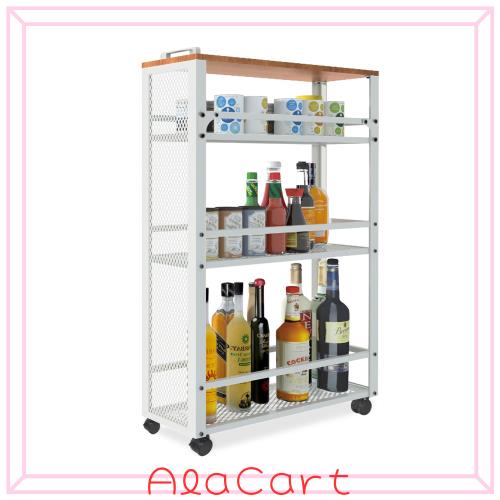 【移動に便利】キャスター付きで移動便利、360度自由に回転することもでき、よりフレキシブルな方向を持っています。2つはロック付きで、キッチンラックを特定な位置に固定できます。しかも、ハンドル付きだから使用時・収納時もスムーズに移動できます。