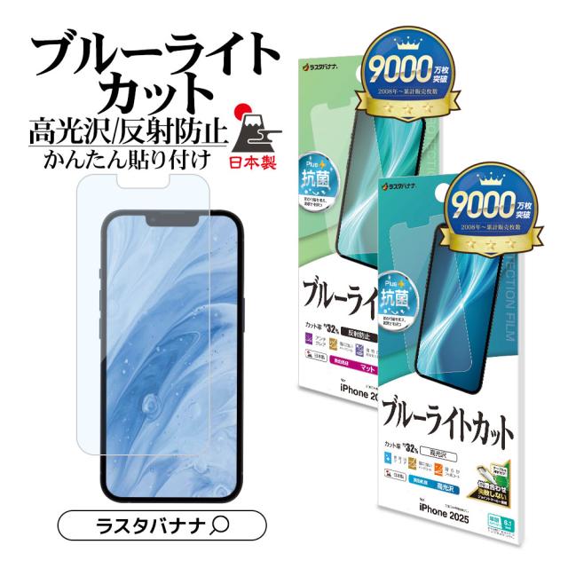 iPhone 16e フィルム 全面保護 ブルーライトカット 高光沢 マット アンチグレア 反射防止 抗菌 日本製 貼り付けガイド アイフォン 保護フィルム ラスタバナナ