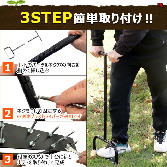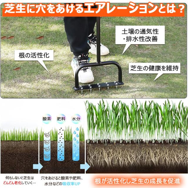 〇芝生に穴をあけて健康を維持!〇芝生に穴をあけるエアレーションを行うことで酸素や肥料、水分などの栄養分の吸収率をUPし、芝生の健康を促進する便利アイテムです!