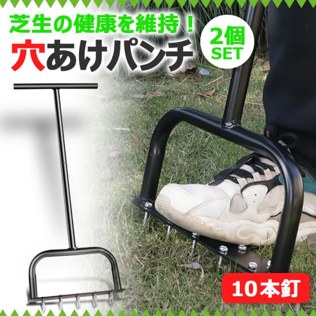 芝生 穴あけ 2個セット エアレーション 10本釘 ローンスパイク ローンパンチ 芝生スパイク 芝スパイク ガーデンスパイク 穴開け 根切り 庭 ガーデニング スパイク 穴 穴あけ器 穴あけ機 穴開け器 穴開け機