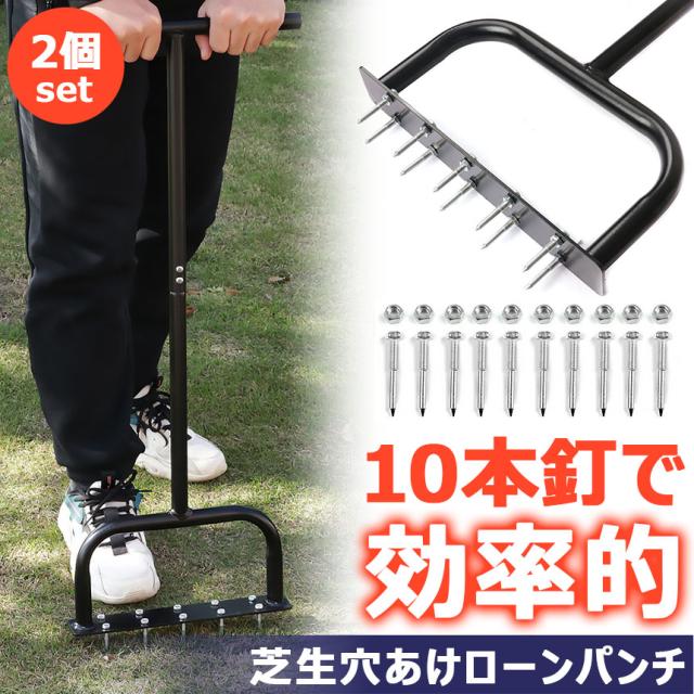 芝生 穴あけ 2個セット エアレーション 10本釘 ローンスパイク ローンパンチ 芝生スパイク 芝スパイク ガーデンスパイク 穴開け 根切り 庭 ガーデニング スパイク 穴 穴あけ器 穴あけ機 穴開け器 穴開け機