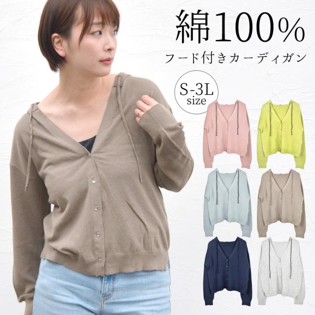 カーディガン レディース 秋 フーディー 薄手 長袖 綿100% ニットパーカー サマーニット UVカット トップス パーカー フード付き 羽織り スプリングニット パーカーニット ラッシュガード 紫外線対策 軽い fk25 (bdg512)