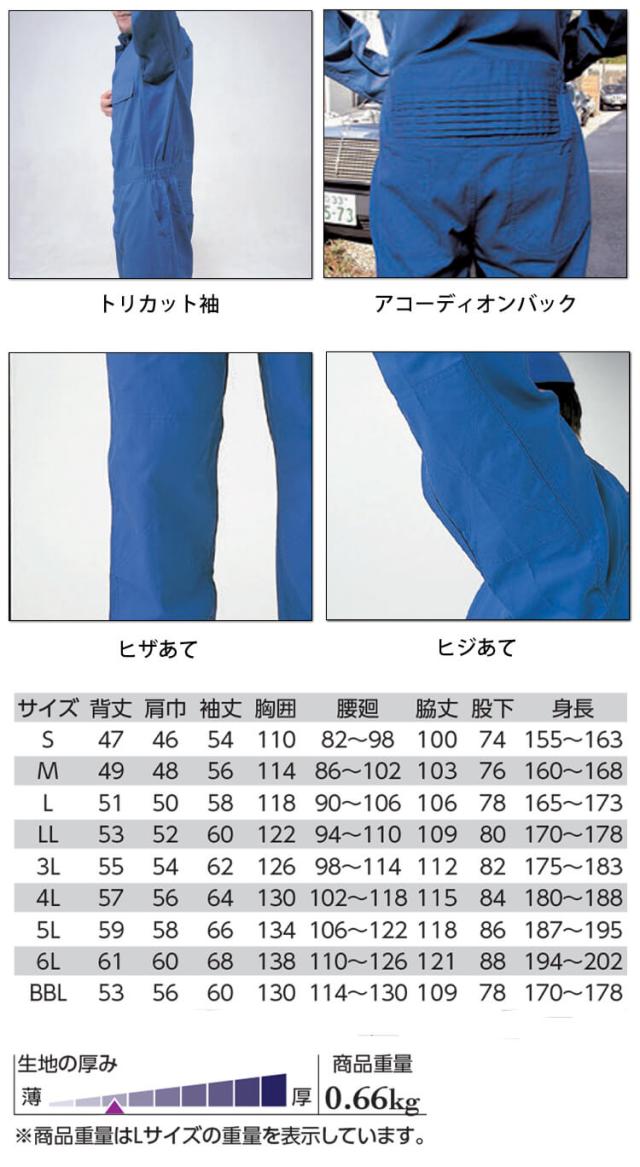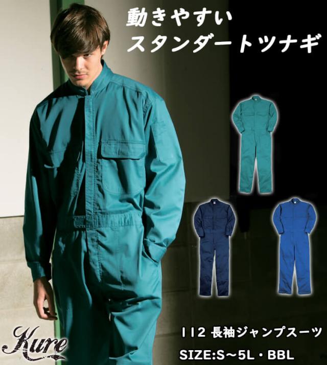 長袖ジャンプスーツ 112 クレヒフク KURE つなぎ 通年 作業服 作業着 4L-BBLLサイズ