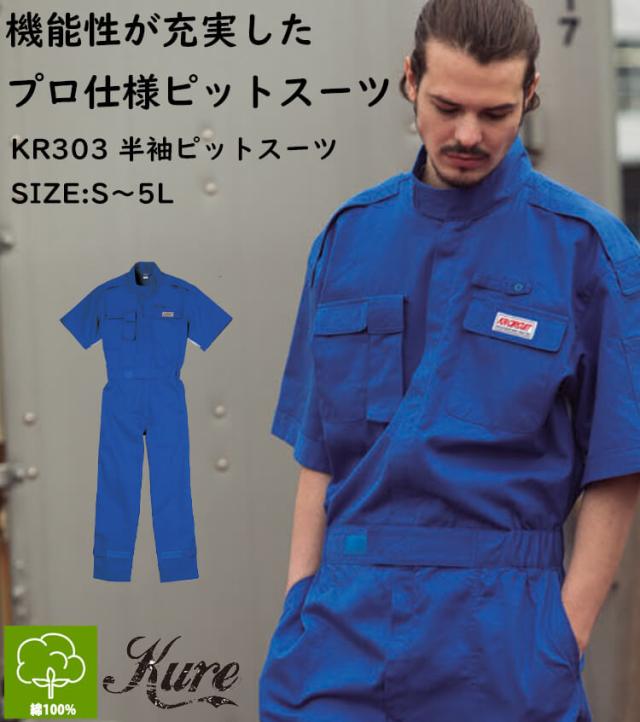 半袖ピットスーツ KR303 クレヒフク KURE つなぎ 春夏 作業服 作業着 4L・5Lサイズ