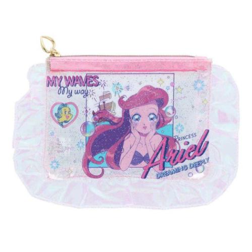 リトルマーメイド フラットポーチ フリル付クリアポーチ アリエル バレエコア Y2K ディズニープリンセス メール便可