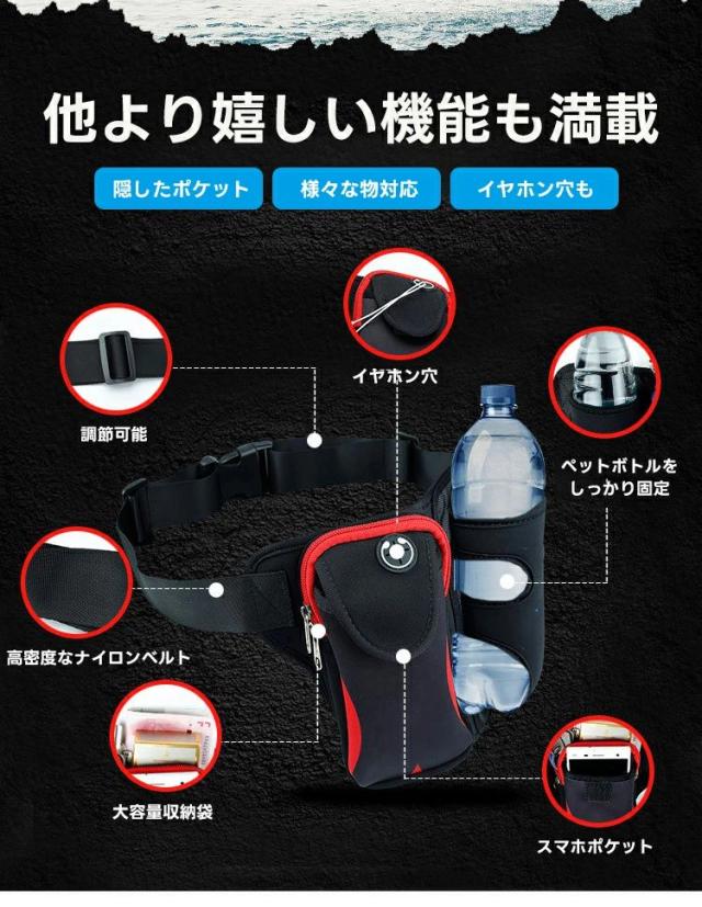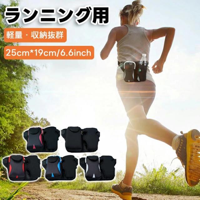 ランニングポーチ ランニングバッグ ウォーキングポーチ ウエストポーチ スマホポーチ ペットボトル ホルダー付き 全5色 スボーツ用ウェストバッグ ジョギングポーチ 軽量 ランニング イヤホン穴付 防水 大容量 レディース メンズ 登山 旅行 遠足 サイクリング マラソン