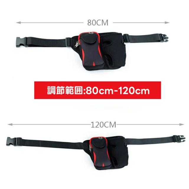 バッグ本体のサイズは25cm*10*5cmです。ウエストベルトの長さは80〜120cmで、場合によってご自由に調節が可能ですので、大柄の体型でも大丈夫です。ジョギングなどの運動の際に欠かせない水分補給のために、ウォータボトル・水筒用のメッシュポケットを装備。(本バッグは水筒が含まれておりません)