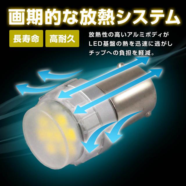 S25ピン角150°形状の汎用LEDバルブは、12V専用車両に対応しており、ストップランプやテールランプ、ウィンカーなど様々な用途に最適です。