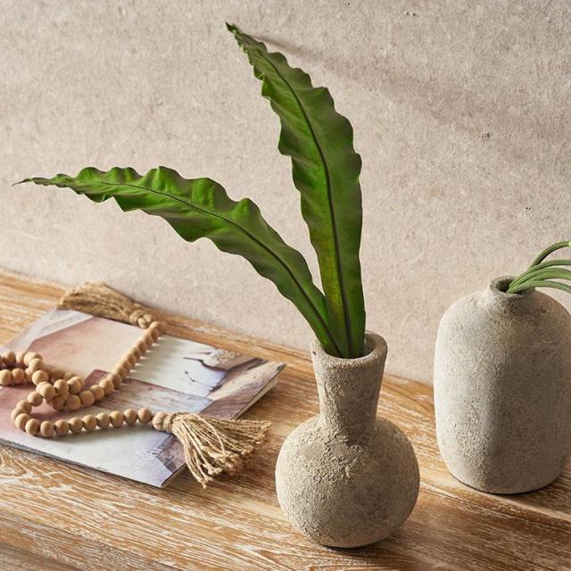 ひらひらとした葉が特徴的な、着生シダの仲間「ネストリーフ」のフェイクグリーン。本物と見間違うほどのリアルな質感が魅力です。フラワーアレンジメントにぴったりで、メインのお花を引き立て、より華やかな仕上がりを演出してくれるアイテムです。