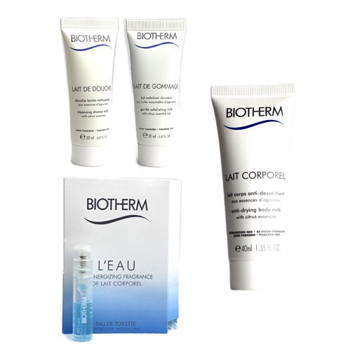 ■ビオテルムローオードトワレ1.2mlトライアル香水ベルガモット、オレンジ、マンダリンのエッセンス、フレッシュな柑橘系のマイルドな香り。■ビオテルムジェントルエクスフォリエイティングミルク20mlさわやかなシトラスの香りのボディスクラブ。■ビオテルムクレンジングシャワーミルク20mlさわやかなシトラスの香りのボディソープ■ビオテルムレコルポレールモイスチャライジングボディミルク40mlさわやかなシトラスの香りのボディミルク。