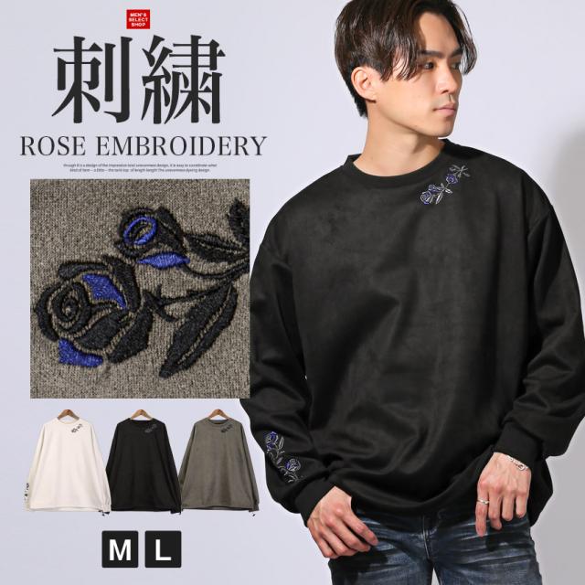 ロンT メンズ レディース 長袖 トレーナー スウェット スエード ドルマンスリーブ バラ 薔薇【ローズ刺繍ポリスエードロンT】 aa-3448