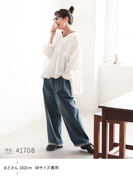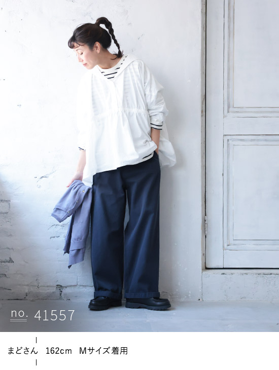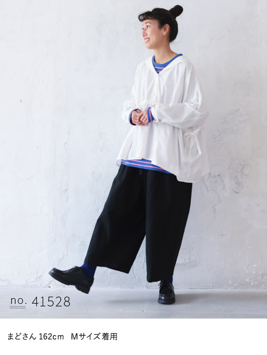 はちみつ堂 セーラー襟のふんわりプルオーバー レディース ブラウス シャツ 長袖 スキッパー風 Aライン フレア 綿 トップス