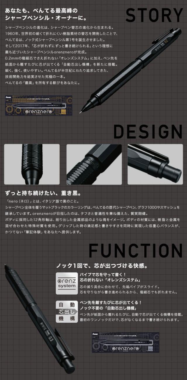 Pentel/ぺんてる orenznero オレンズネロ シャープペンシル ブラック 芯径0.2mm PP3002-A