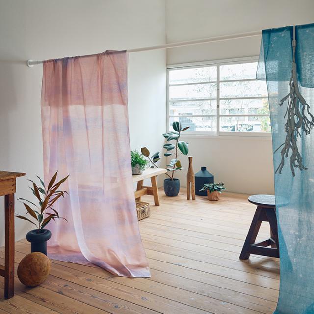 布をかけて間仕切りにしたり、グリーンをハンギングしたりと新たな使用シーンに対応。