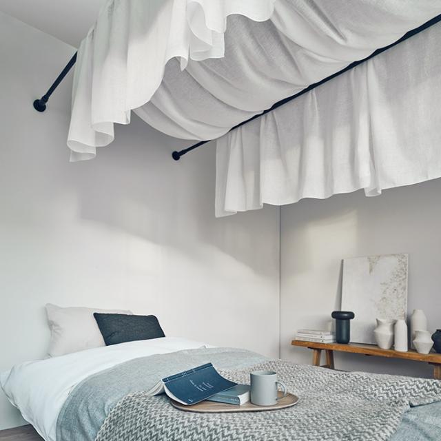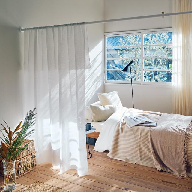 幅3mまで対応。インテリア性を保ちつつ、部屋の端から端まで渡すことができます。