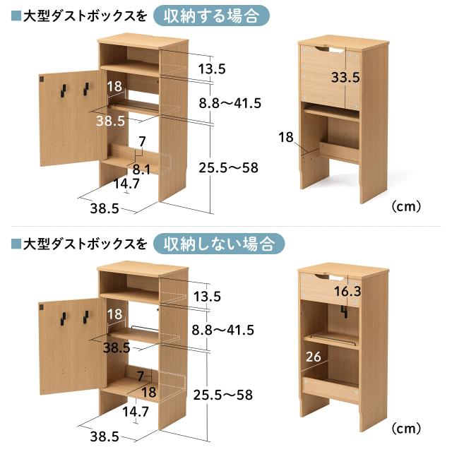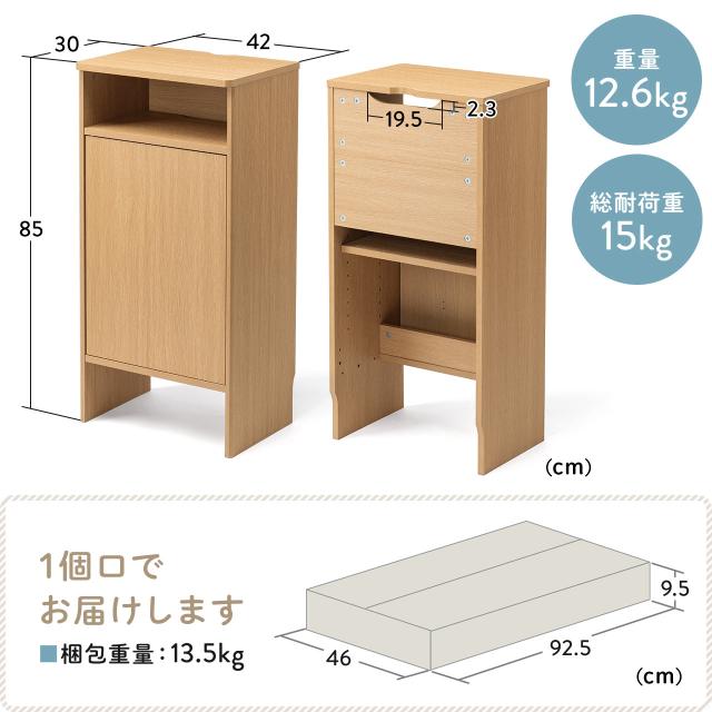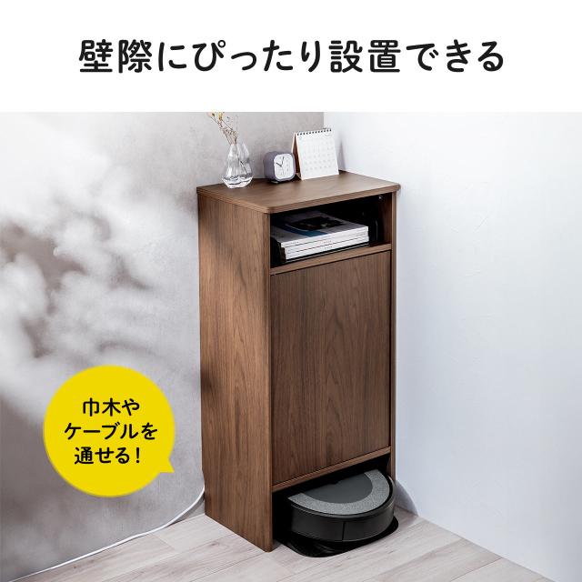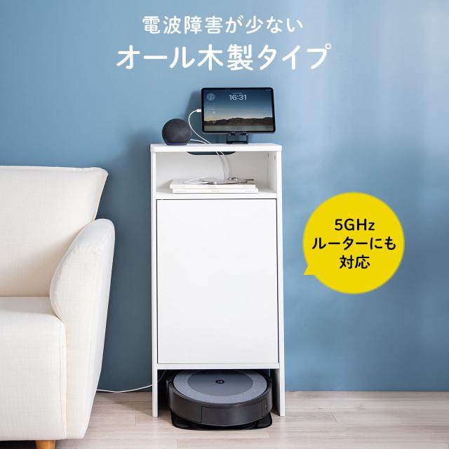 ●ダストボックス付きロボット掃除機を下部に設置することが可能な木製収納ボックスです。●ロボット掃除機を収納しない場合は、大型Wi-Fiルーターや電源タップなどを収納可能です。