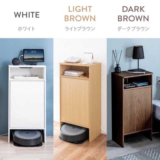 ロボット掃除機収納ボックス 自動ゴミ収集機能付き機種対応 ダストボックス対応 ルンバ基地 ルーター収納 ケーブル収納 タップボックス 充電ステーション 木製 3段 高さ85cm ダークブラウン ライトブラウン ホワイト[200-CB062]