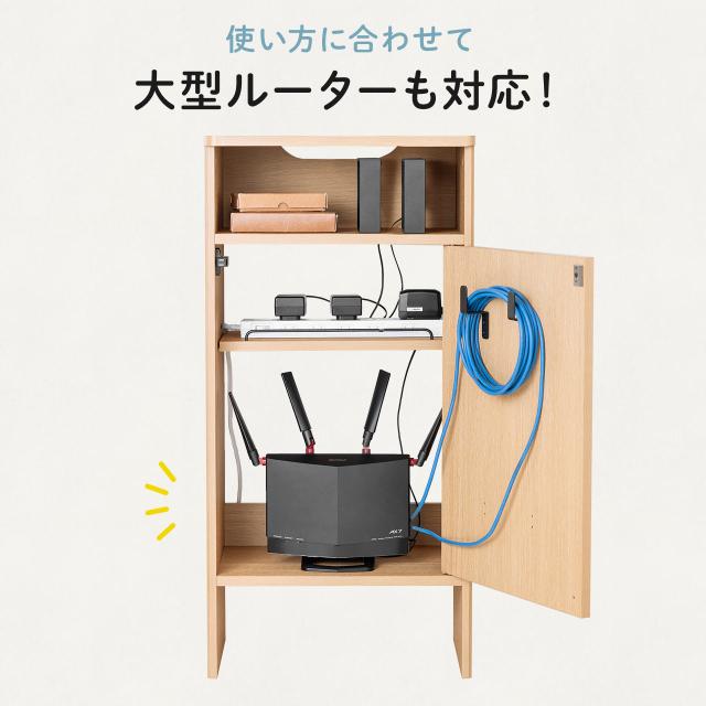 ●本体はすべて木製なので無線ルーターなどのWi-Fi機器を収納しても電波障害がありません。