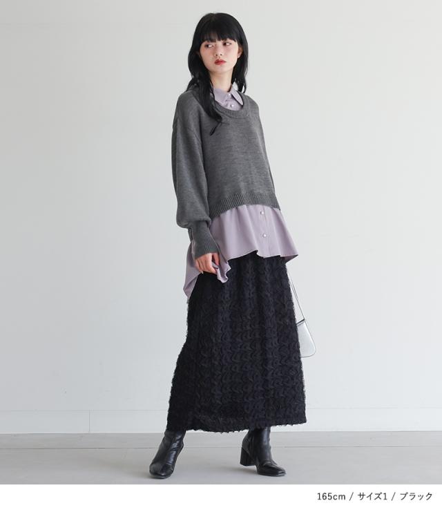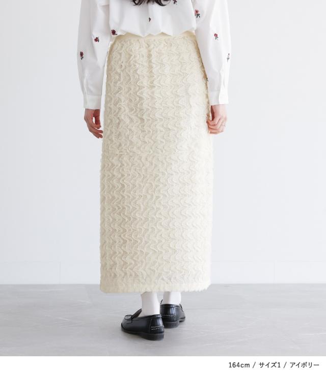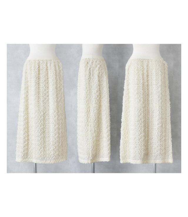 『ウェーブチュールレーススカート』【メール便不可】【30】[スカート レディース ボトムス ウェーブチュール チュール レース ロング丈 ウエストゴム オシャレウォーカー]