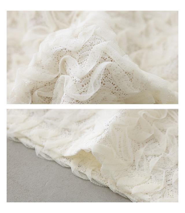 ■デザイン ウェーブチュールが存在感あるデザインのスカート。シンプルなデザインながら、ふわっと軽やかな印象の一枚です。ウエストは総ゴム仕様で楽に着脱でき、快適な穿き心地です。 ■コーディネート シンプルなトップスと合わせても華やかに仕上がるアイテム。Tシャツやスウェットでカジュアルダウンしたり、レーストップスやブラウスで雰囲気たっぷりにまとめてもおすすめです。足元はパンプスで上品に合わせても、スニーカーでカジュアルにスタイリングしても。幅広いシーンで着回せるアイテムです。 ■素材 柔らかく軽やかなチュール生地。土台にはカットソーレース生地を使用し、さりげないポイントに。肌滑りの良い裏地つきで快適な穿き心地を叶えます。伸縮性があるのでストレスフリーにご着用いただけます。 |