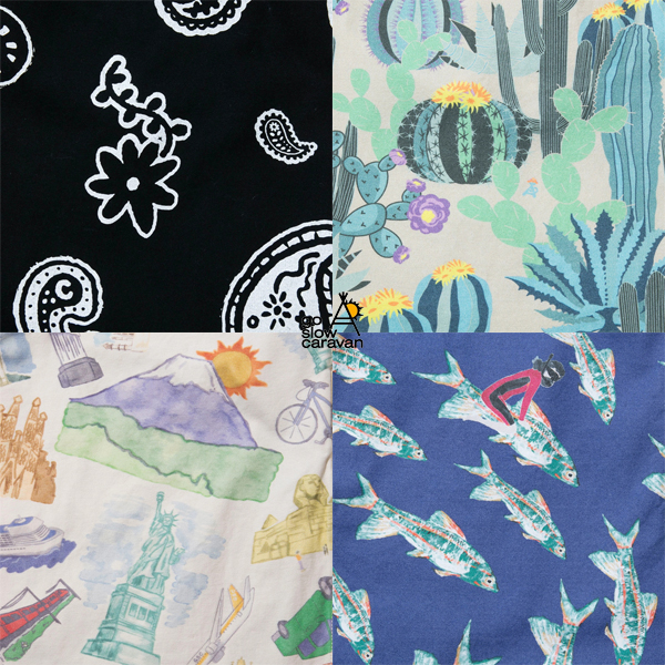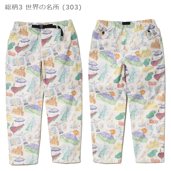 go slow caravan 総柄パンツの新柄バージョン登場☆ 定番人気のハイクパンツ。ウエストはウエービングベルト仕様。 腰のあるライトキャンバス生地にオリジナル柄の総柄プリント。 ゆとりのあるウエスト、ヒップ回りから緩やかに裾に向けテーパードしたシルエット。 ポケットも大容量で利便性にも貢献します。 《総柄1/ペイズリー》 《総柄2/サボテン》 《総柄3/世界の名所》 《総柄4/ハヤの群れ》 | ||||||