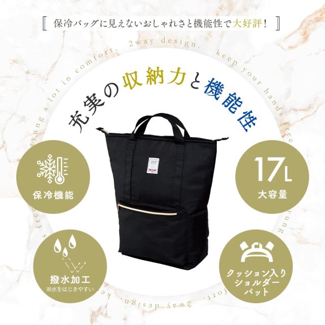 保冷リュック 17L 大容量 2way リュック 手提げ トート 大きめ 保冷 お買い物バッグ エコバッグ 保冷トートバッグ クーラーバッグ アウトドア おしゃれ かわいい 無地 黒 ブラック レディース メンズ カジュアル 普段遣い 大きいサイズ 撥水 きれいめ 【沖縄県除き送料無料】