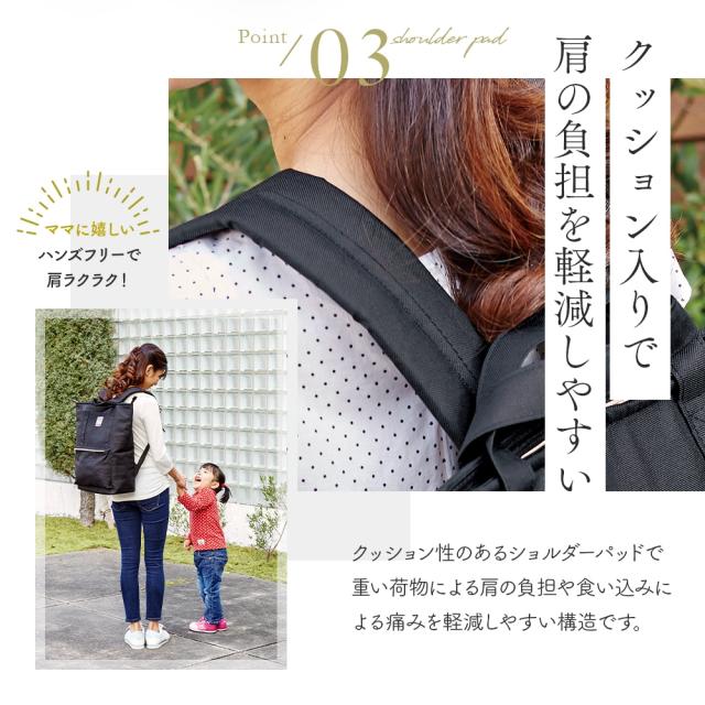 クッション入りの肩パッドが肩にやさしくフィットします。