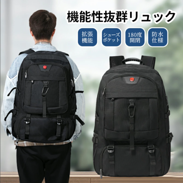 リュック メンズ 大容量 拡張 リュックサック レディース 黒 通勤 軽量 撥水 機内持ち込み 防災 帰省 卒業旅行 アウトドア 旅行バッグ 登山リュック