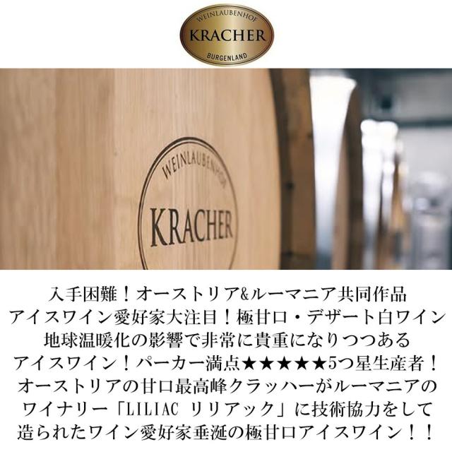 入手困難!オーストリア&ルーマニア共同作品のアイスワイン愛好家大注目!極甘口・デザート白ワイン愛好家!地球温暖化の影響で非常に貴重になりつつあるアイスワイン!パーカー満点★★★★★5つ星生産者!オーストリアの甘口最高峰クラッハーがルーマニアのワイナリー「LILIAC リリアック」に技術協力をして造られたワイン愛好家垂涎の極甘口アイスワイン!!
