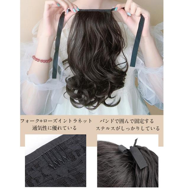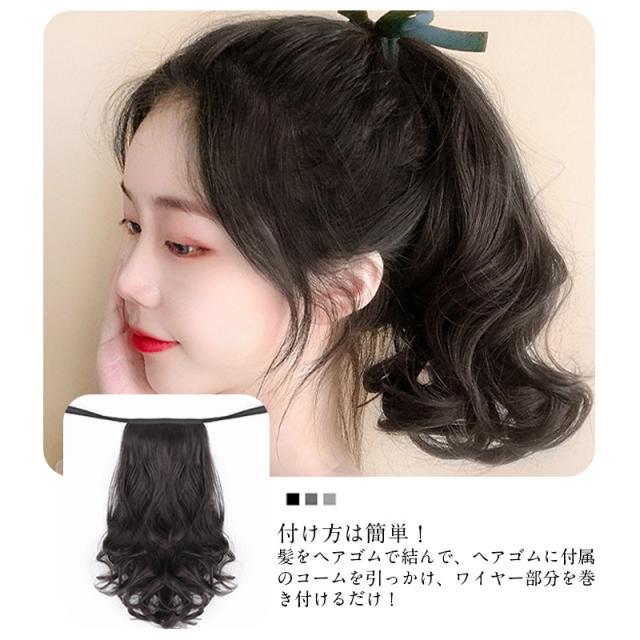 付け方は簡単!髪をヘアゴムで結んで、ヘアゴムに付属のコームを引っかけ、ワイヤー部分を巻き付けるだけ