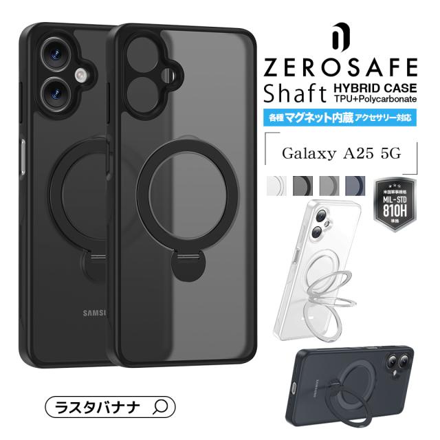 Galaxy A25 5G ケース カバー ハイブリッド ZEROSAFE Shaft 耐衝撃吸収 MIL規格 マット TPUバンパーケース リング付き ゼロセーフ シャフト ギャラクシー SC-53F SCG33 スマホケース ラスタバナナ