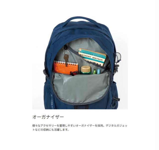 フロントポケット内部にはオーガナイザーも備え、充実した機能とシンプルな外観デザインでハイキングから日常使いにちょうどいいサイズのデイパック。