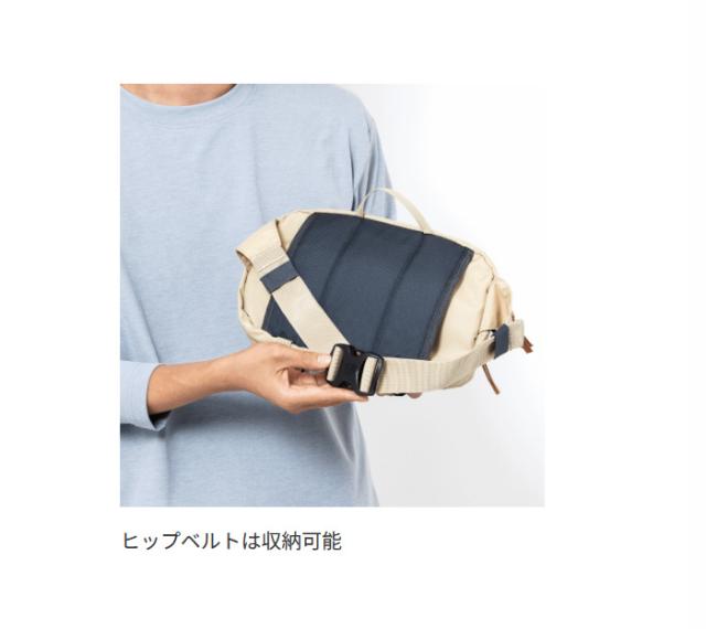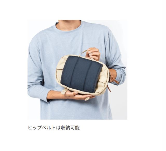 ウエストベルトを収納して小型ショルダーバッグとしても使える、2wayヒップバック。