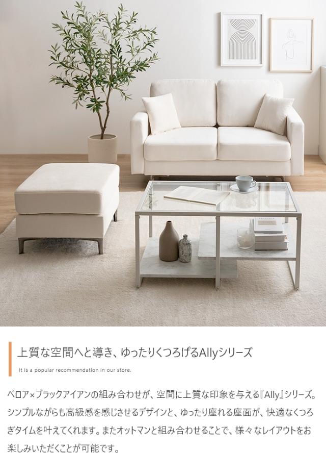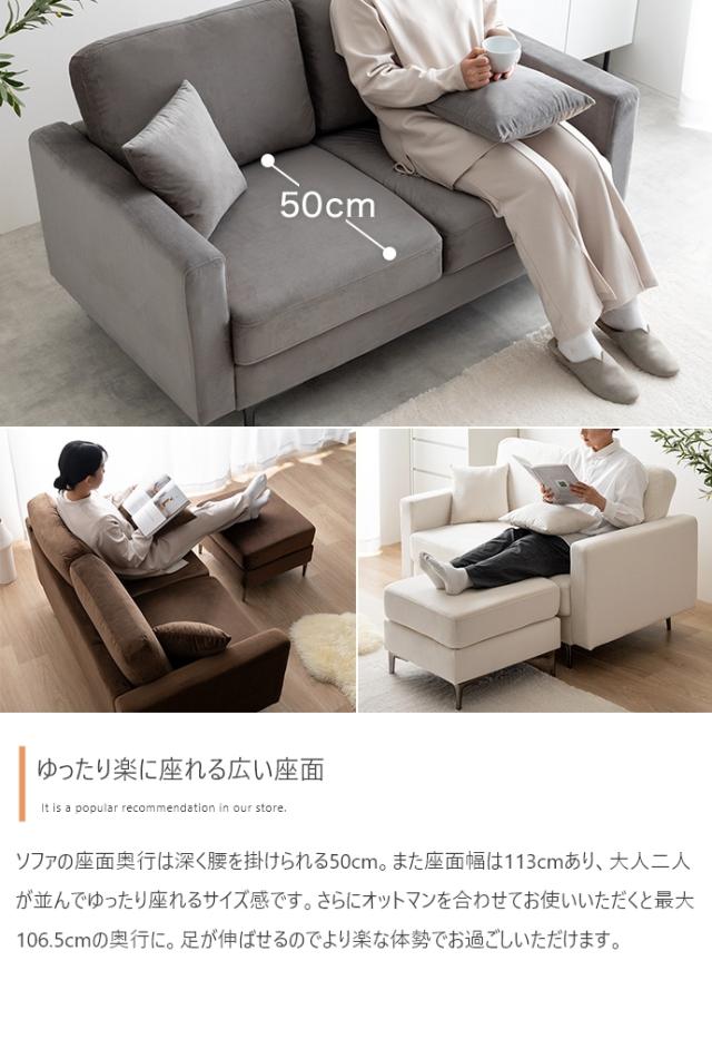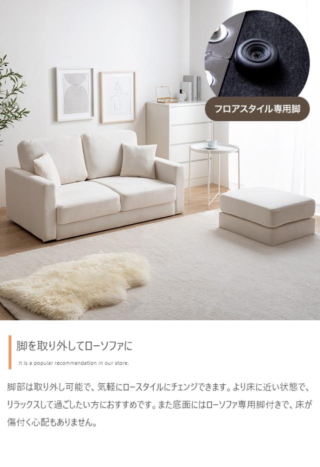 ★国内メーカー保証付★ 2人掛けベロアソファ オットマン 2点セット 2Way ローソファ ベロア ゆったり メーカー直送 送料無料
