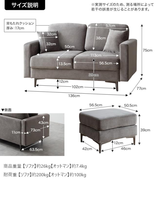 ソファ) 幅136cm×奥行77cm×高さ75cm(座面高:39cm)