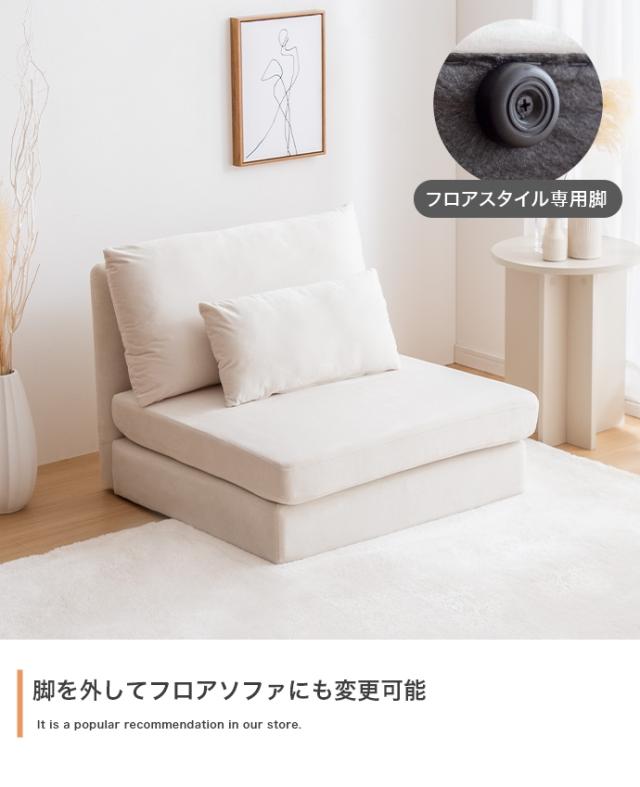 ★メーカー保証付★ 1人掛けソファ 2Way ローソファ ベロア 高級感 上品 ゆったり メーカー直送 送料無料