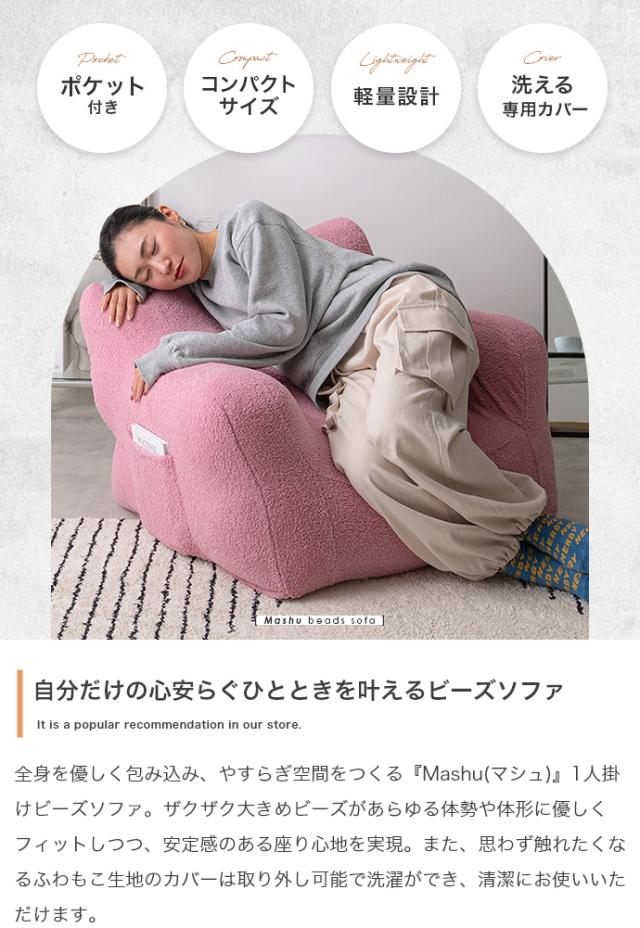 ★メーカー保証付★ 1人掛けビーズソファ 幅71cm 大きめビーズ ふんわり もこもこ カバー洗濯可能 メーカー直送 送料無料